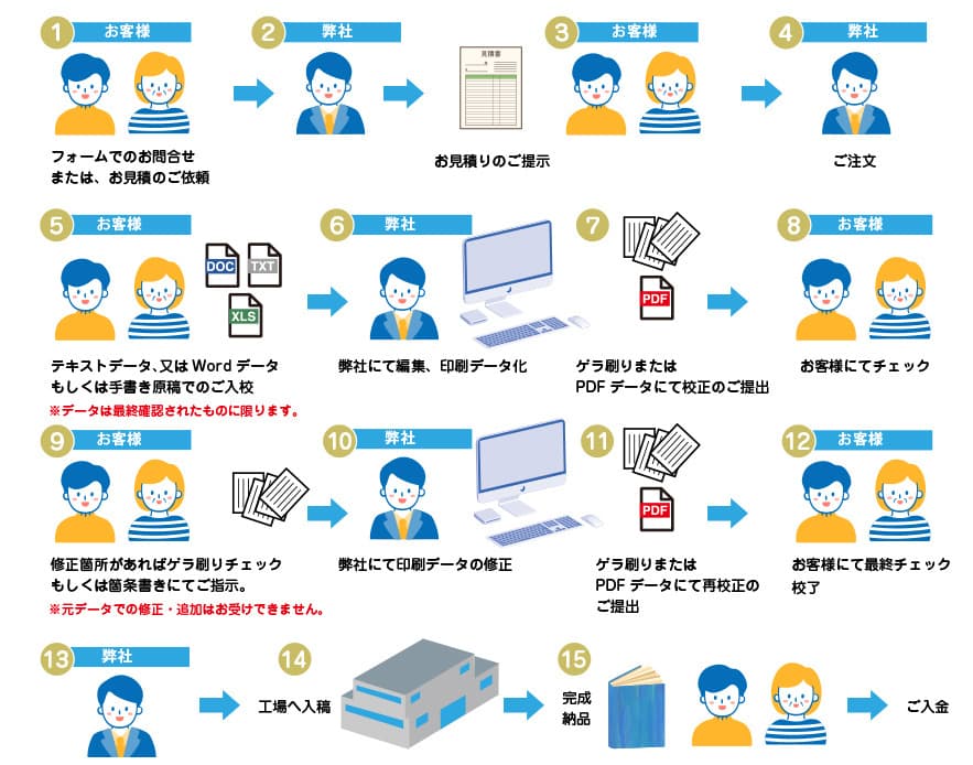 弊社は本製作のデータのみを行う会社です。印刷と製本は完全にアウトソーシング。